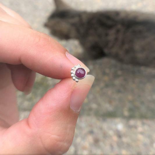 Small Pink Ruby Silver Stacking Ring