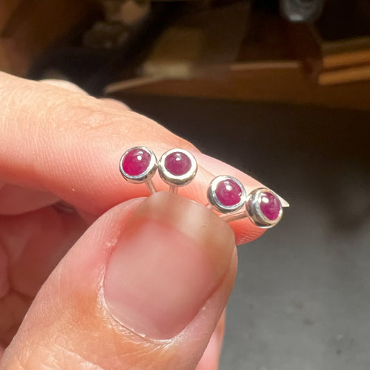 Silver Ruby Stud Earrings