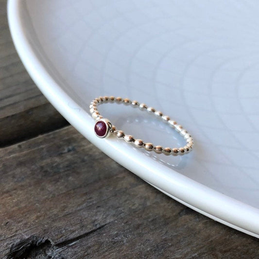 Mini Genuine Ruby Gemstone Sterling Silver Stacking Ring