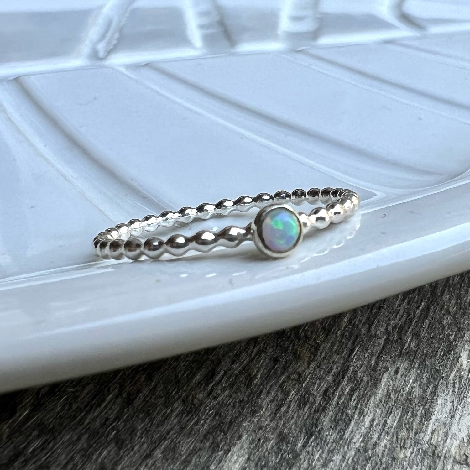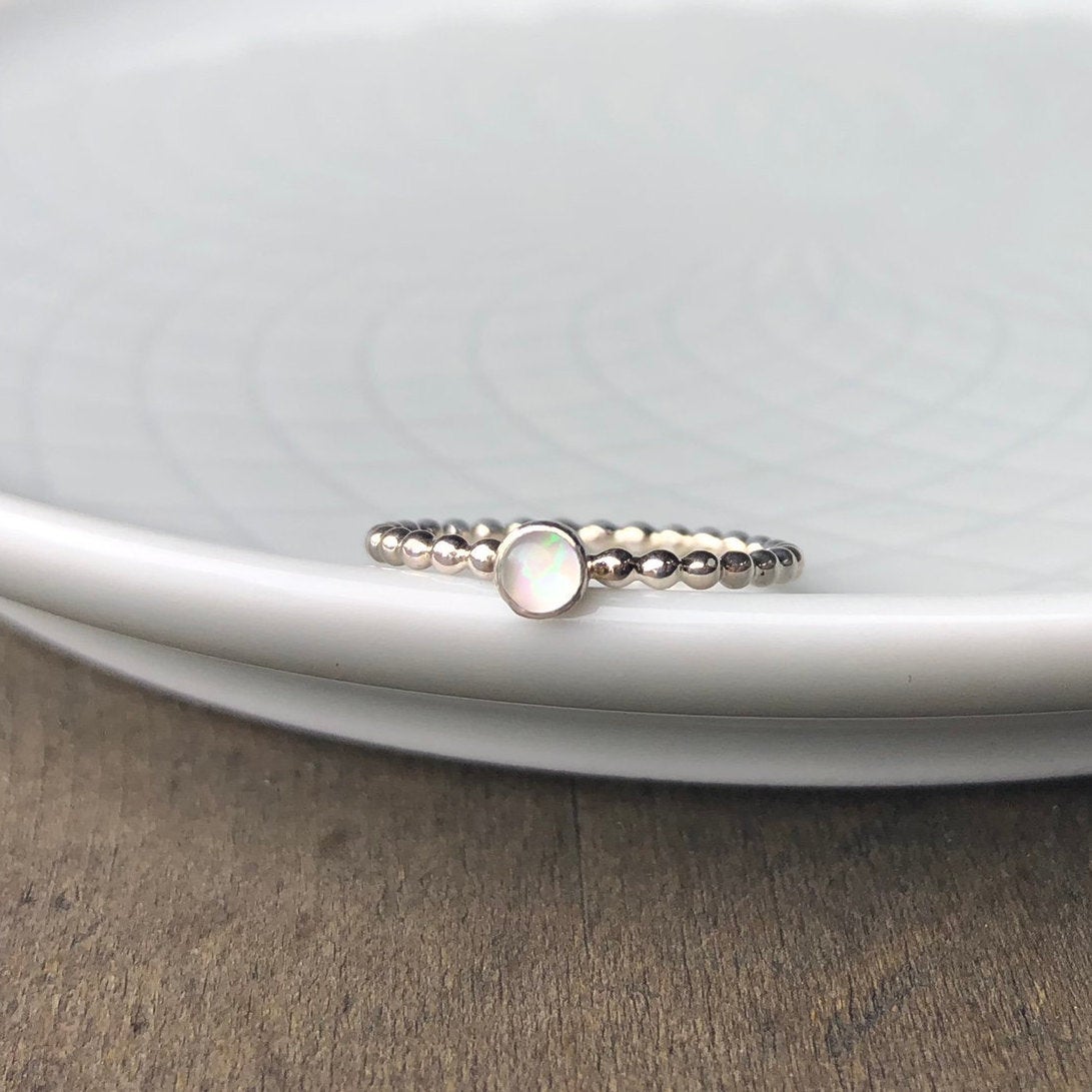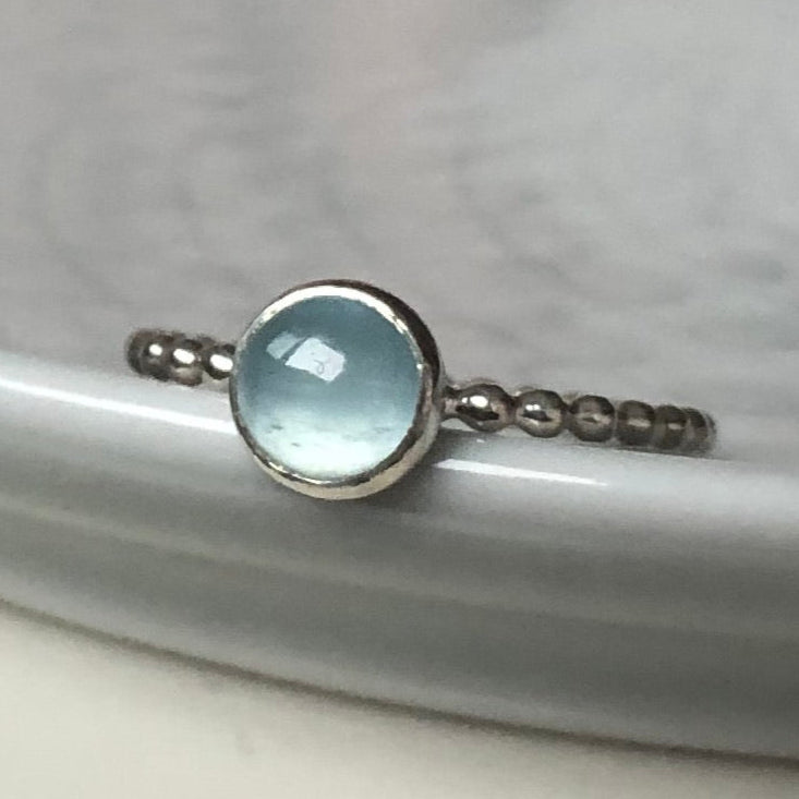 A simple, thin gemstone stacking ring featuring a lovely semi-precious round shaped...