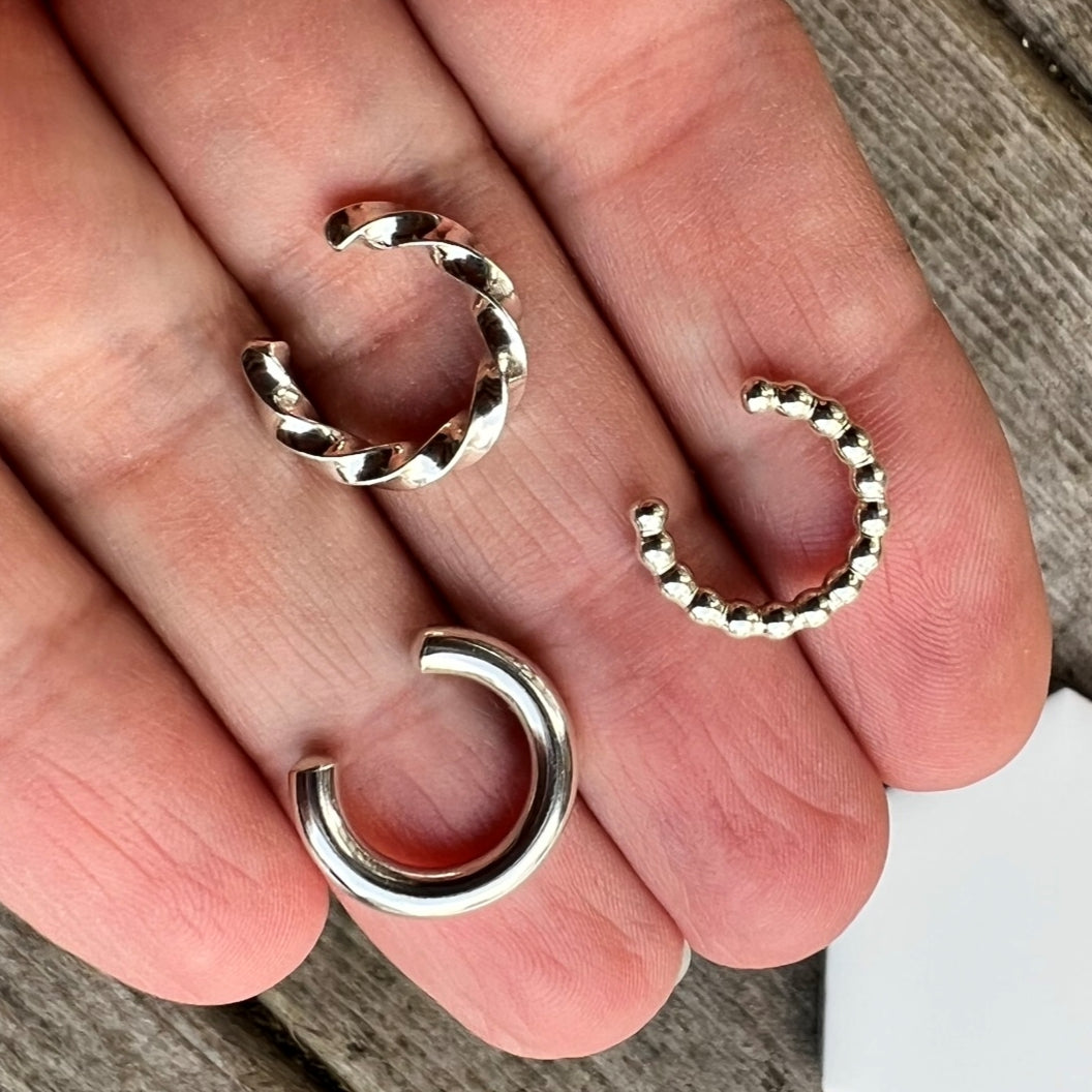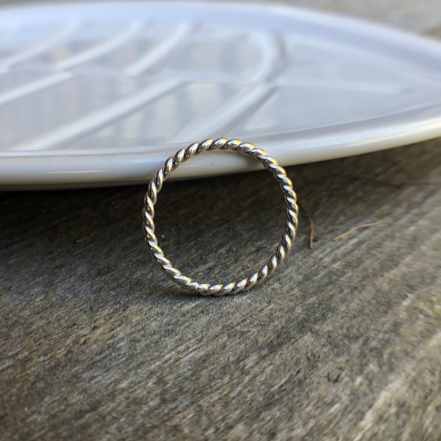 2 smooth style silver rings sandwich-ing a rope style ring